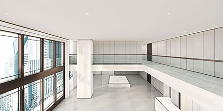 办公楼现代的空间设计,自然光照的充分利用、人的心理舒适程度以及空间与人的交互感,都是华翔绿地现代办公空间环境设计中要遵循的重要方面。空间视觉效果开敞,空间自然光照利用充分,空间界面友好,人与环境的交互化 体验效果更好,当然,也有力契合了恒力集团的团队文化。