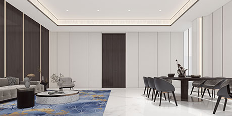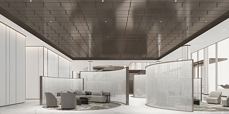 “唯天下至诚,为能尽其性。”伽马先生深耕设计领域多年,在项目设计中善于融入对企业品牌与商业逻辑的理解,用设计的语言代替企业品牌与消费者交流。售楼处大堂内的艺术装置,光影流转,将“光”与“雨”的意境铺陈, 稀释了大空间带来的空旷感。半透光弧形隔断,将动静区域划分,为洽谈区营造一定私密性。行动路线,接待、展示、洽谈、签约,动线一气呵成,贴合销售路径,辅助空间使用功能延展。内部办公区域线条简洁,功能聚焦。