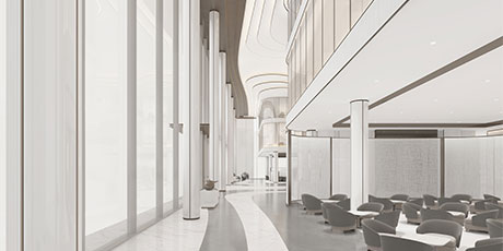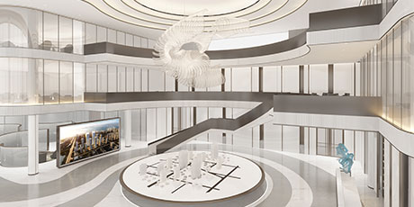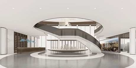 项目所处的地块位于苏州吴江太湖新城,是吴江近几年最大体量的商业地块。楼盘整体业态囊括商业、公寓、写字楼、研发等,是苏州湾核心区域内的又一地标性项目。对于如此大体量又极具战略意义的项目售楼处,开放商对于设 计师及团队的甄选可谓慎之又慎。